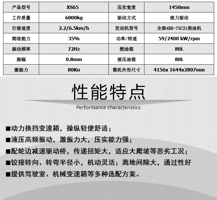 首要特色:高頻振動 激振力大 壓實才能強